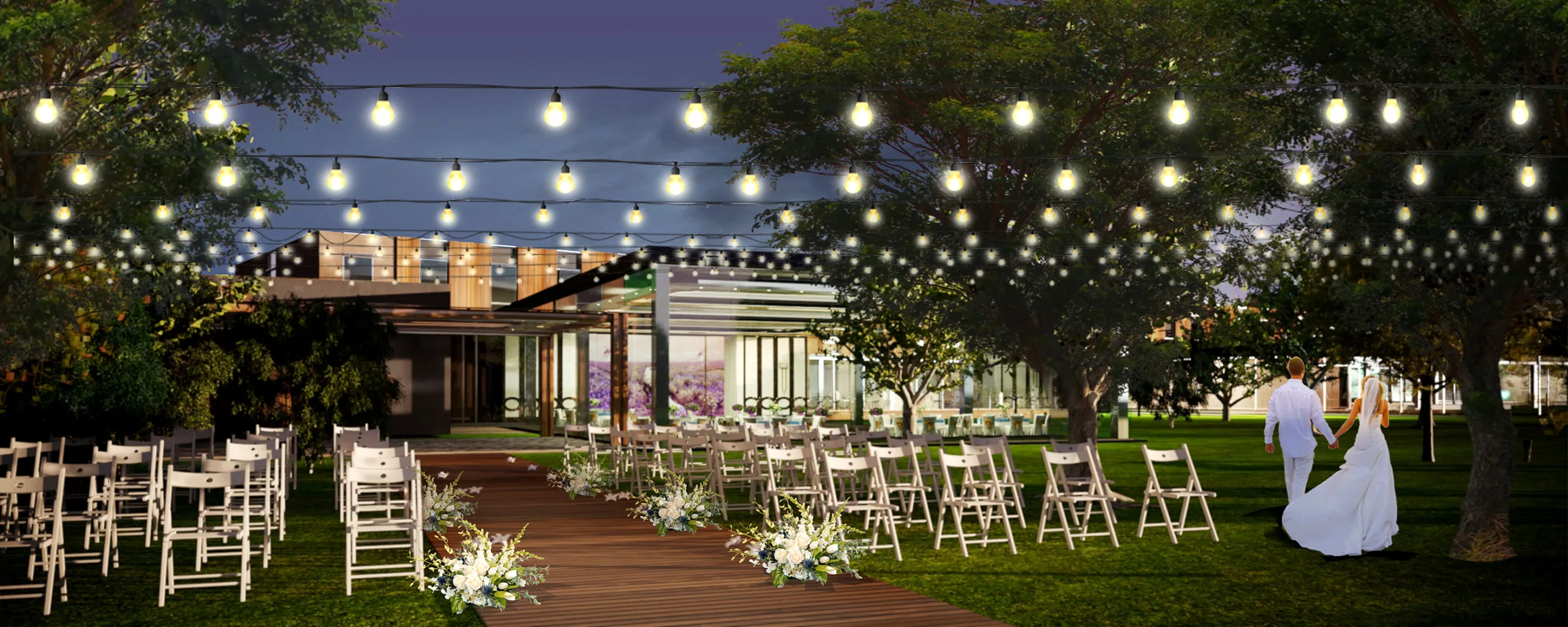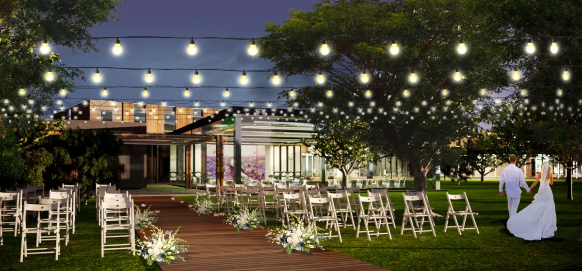 • професійний багатофункціональний зал із супутньою інфраструктурою, в тому числі з власною ділянкою в парковій зоні, передбаченою для проведення весільних церемоній і корпоративних подій;
