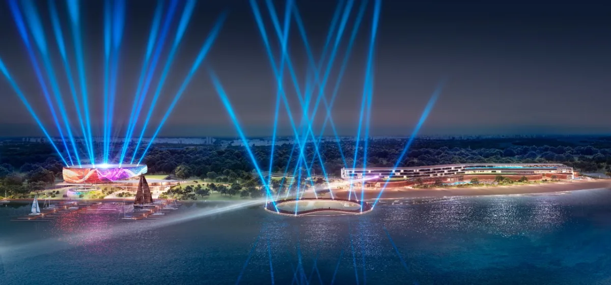 Згідно архітектурно-планувальних рішень, концепція передбачає зведення з нуля двох будівель, створення великої паркової зони та реалізацію причалів і парку на воді. В одній будівлі планується зведення арени (концертного залу), яхт-клубу та паркінгу, в іншій – готелю, казино, SPA-центру, нічного / пляжного клубу, театру кабаре, ресторанів, паркінгу та ін. В результаті реалізації проєкту утвориться сучасний квартал для відпочинку та розваг з атмосферою Лас-Вегаса, своєрідне «місто в місті». Загальна будівельна площа (GBA) проєкту становитиме біля 78 000 кв. м. Основними «якорями» проєкту стали: SPA-центр з унікальним для Києва та України панорамним басейном на верхньому поверсі основної будівлі, сучасна та високотехнологічна арена (концертний зал), казино та єдиний в Україні театр розваг і кабаре, яхт-клуб преміум-класу, нічний клуб з водоспадом, міський пляжно-прогулянковий пірс (взимку – ковзанка під відкритим небом), паркова зона, 180-градусний маяк ін.