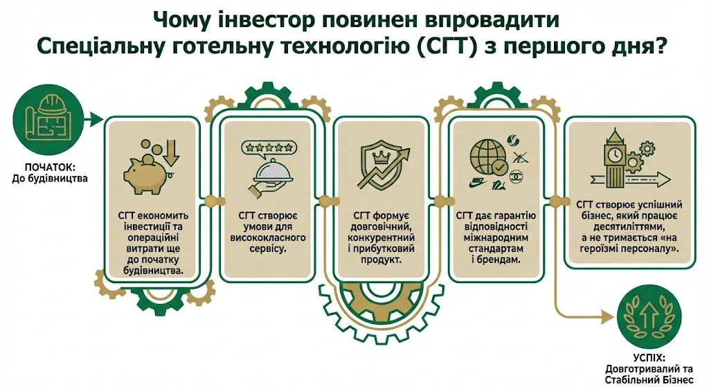 Без інтеграції Спеціальної Готельної Технології ви ризикуєте отримати красиву будівлю, яка буде незручною для гостей, нефункціональною для персоналу та збитковою для власника.